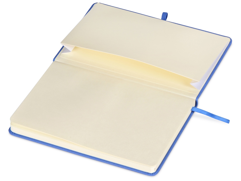 Лаконичный дизайн, приятная на ощупь твердая обложка имеет фактуру ткани. В блокноте 160 линованных страниц кремового цвета с плотностью 80 г/м2, петля для ручки, лента-закладка и удобный карман для карточек и записок.