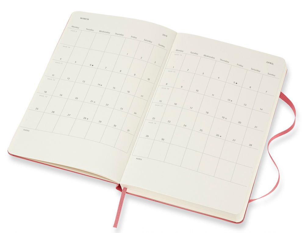 Ежедневник Moleskine датирован с января по декабрь. Данный формат предусматривает отдельную страницу для каждого дня.