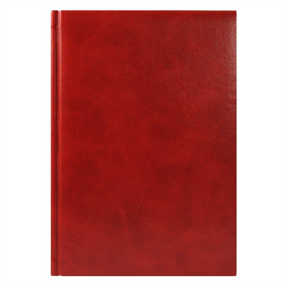 Эффектный недатированный ежедневник в жесткой обложке из искусственной полуглянцевой кожи. Поверхность переплетного материала с легкими прожилками и мягкими, чуть заметными переходами тона от темного к более светлому. Бордовый цвет обложки богатый, насыщенный, неоднородный, с рисунком, имитирующим мраморные разводы. Форзац и нахзац матовые, белого цвета. Страницы с перфорированными уголками из гладкого шелковистого офсета, белые. Срез матовый, в тон страниц. Одинарное атласное ляссе серого цвета с легким отливом. Ширина ляссе 6 мм.