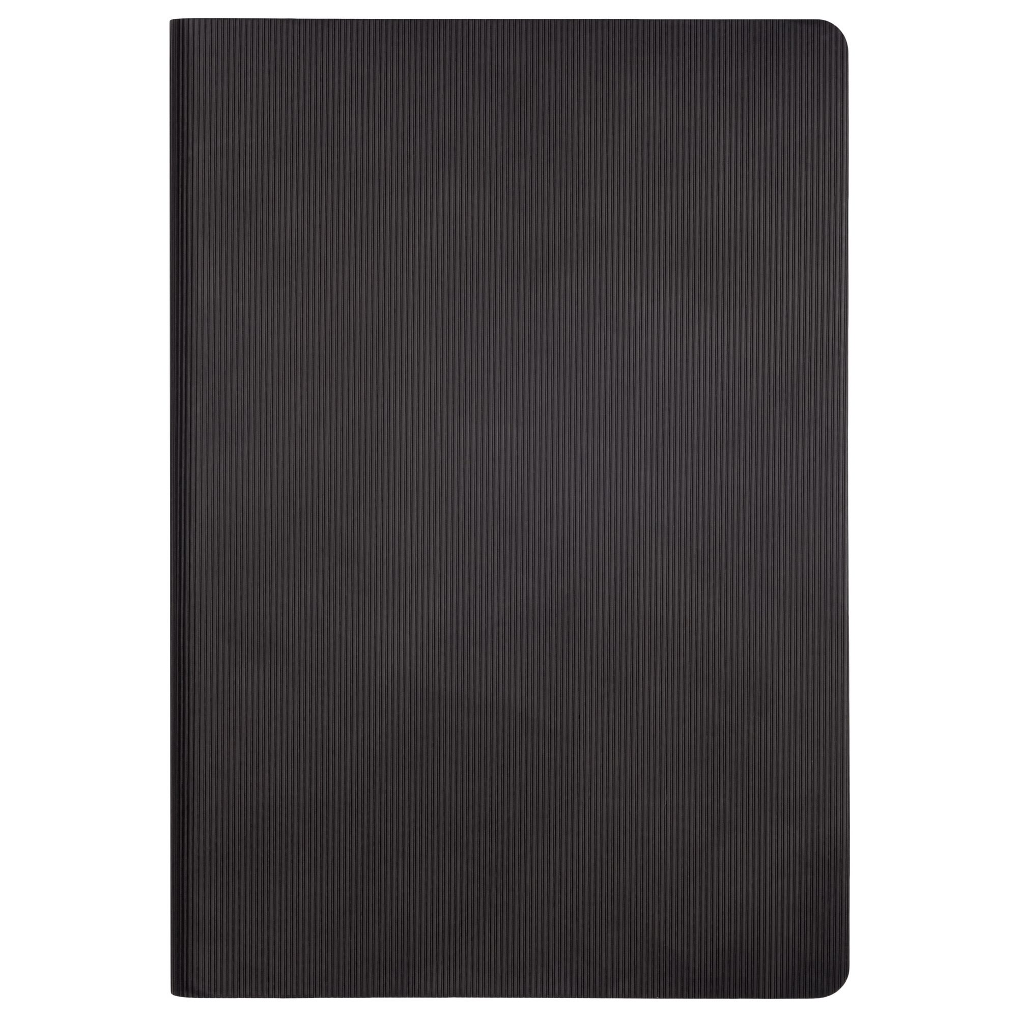 Недатированный ежедневник в строгой деловой лаконичной тональности. Современный технологичный дизайн, спокойные природные цвета. Гибкая матовая обложка со скругленными уголками выполнена из искусственной кожи, имитирующей покрытие в стиле Hi-Tech. Переплетный материал с вертикальным рифлением, бархатистый, со слегка прорезиненным эффектом. За счет интересной рельефной фактуры прослеживается игра цвета при перемене освещения. Цвет – классический черный, плотный, однородный. Создает органичный сдержанный тандем с матовыми форзацем и нахзацем серого цвета. Срез матовый, в тон обложки. Страницы со скругленными уголками приятного глазу теплого светло-кремового цвета. Выполнены из гладкого шелковистого офсета. Ежедневник дополнен двойным атласным ляссе из лент серого и черного цветов, имеющих глянцевый отлив.