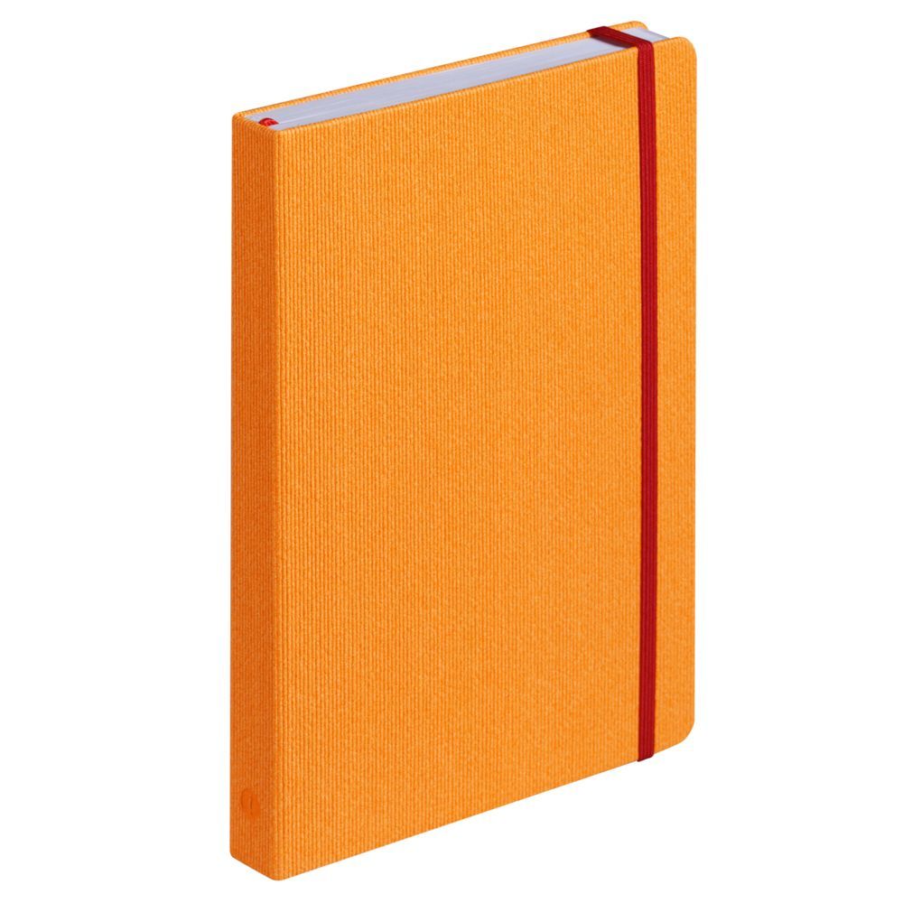 Ежедневник с твердой обложкой, выполнен из материала на синтетической основе с фактурой вельвета, дополнен резинкой и ляссе оранжевого цвета.