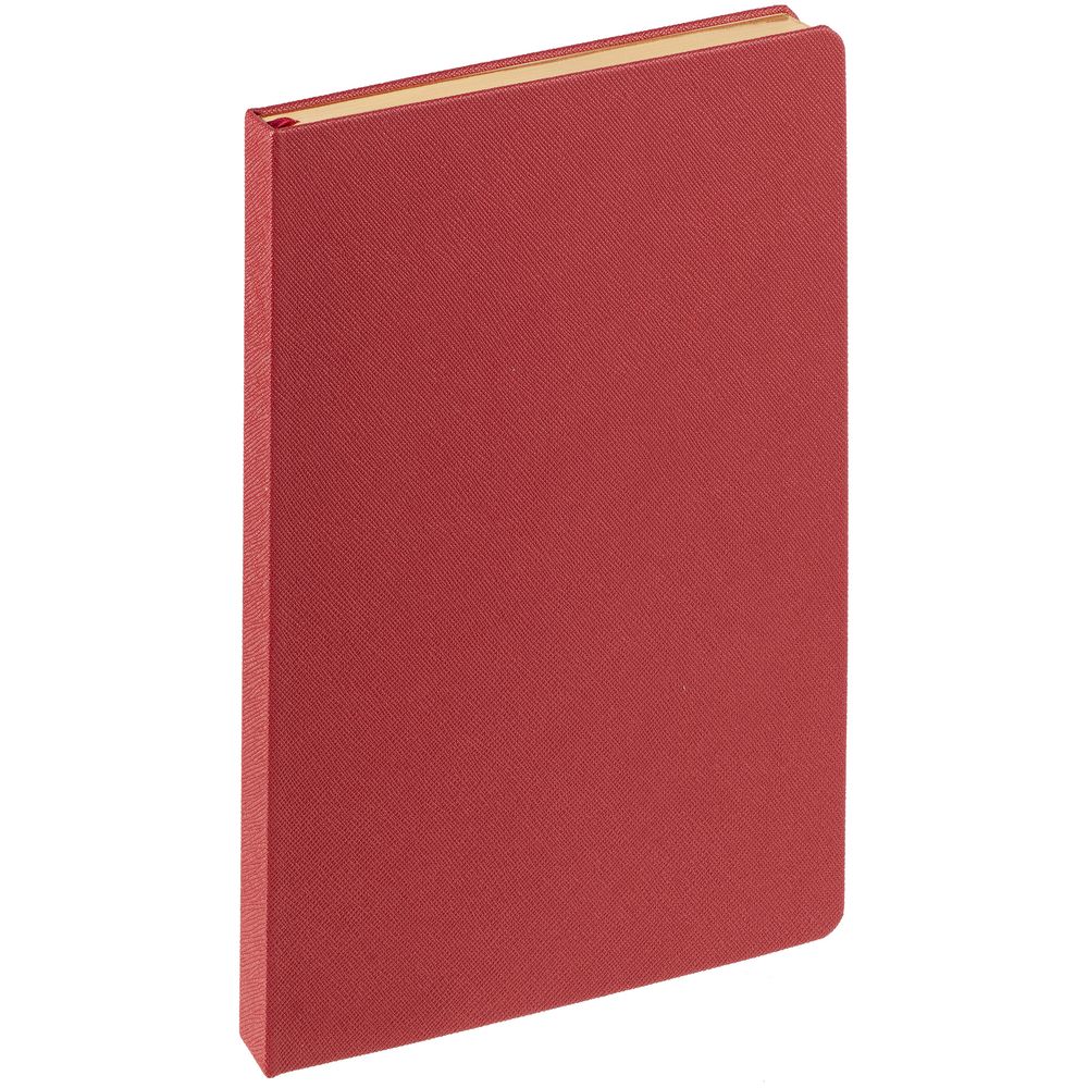 Ежедневник с твердой обложкой и золотистым обрезом, выполнен из материала Saffian, красный, дополнен ляссе в цвет обложки.