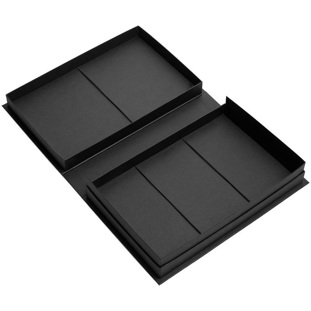 Коробка под набор: ежедневник 15х21 см или 20х26 см , планинг, авторучку. Изготовлена из переплетного картона 1,75 мм, кашированного бумагой Efalin 120 г/м².Для нанесения логотипа методом шелкографии на темные коробки рекомендуем использовать белый, золотистый и серебристый цвета во избежание проявления оттенка основы.
