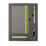 Набор FANCY: универсальное зарядное устройство(2200мАh), блокнот и ручка в подарочной коробке (серый/зеленый)
