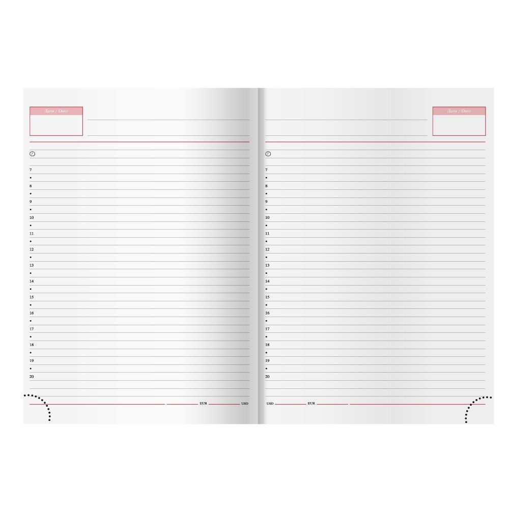 Гладкий, матовый материал с основой под нубук. Общий цветовой фон ровный, слегка проступает мельчайший «кожаный» рисунок на полтона светлее. Обложка декорирована вертикальным рельефным орнаментом в форме шашечек. Широкий спектр цветов – от темных и нейтральных до очень ярких. Материал: Искусственная кожа, материал Velvet