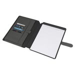 Стильная папка для документов формата А4 с комбинированной обложкой из текстиля и искусственной кожи. Удобный внутренний органайзер имеет карман на застёжке для планшета, блокнот для записей с линованной бумагой.