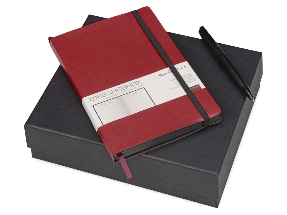 Подарочный набор Bruno Visconti Megapolis Soft: ежедневник А5 недатированный, ручка шариковая (бордо/черный)