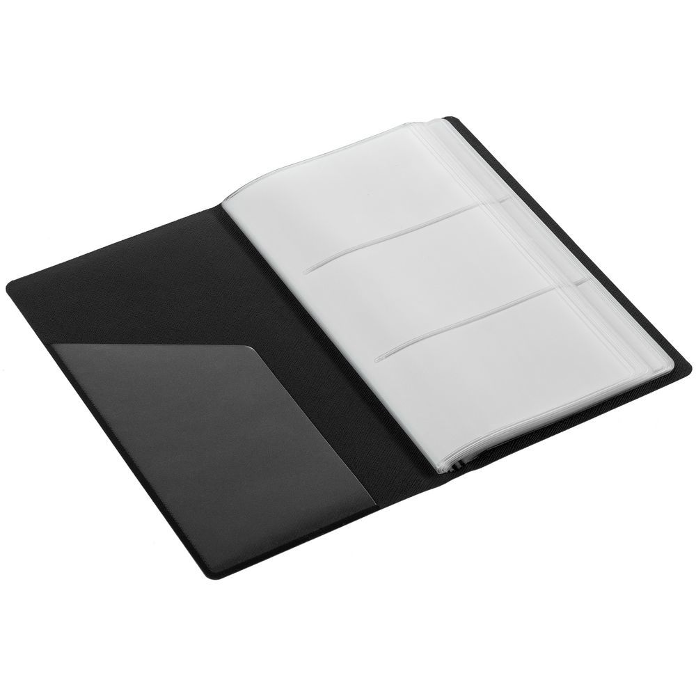 60 карманов для визиток и дополнительный карман на передней обложке.